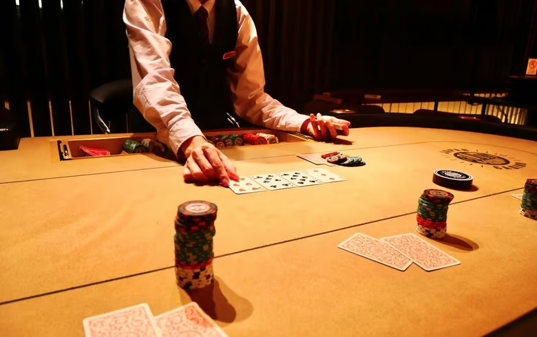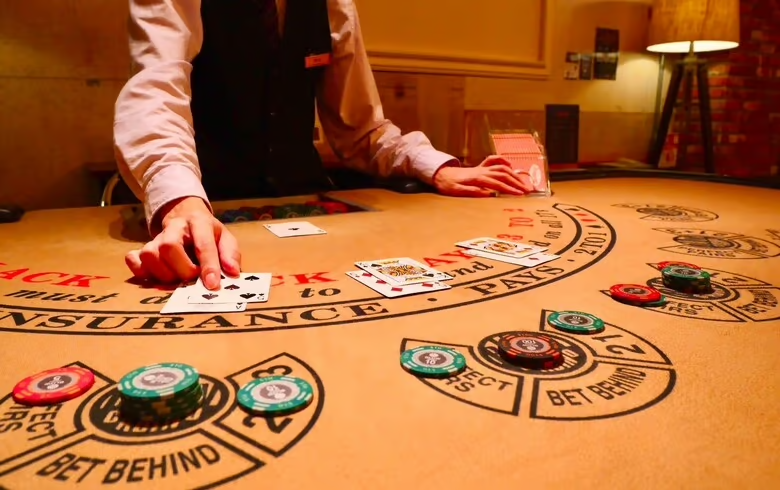 ゲームの説明から進行まで、スタッフが丁寧にご案内。チップの賭け方から戦略まで優しくサポート。