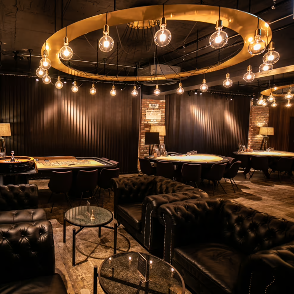 ホテルラウンジのような内装と照明で、特別な時間を演出。非日常への没入感を高めます。
