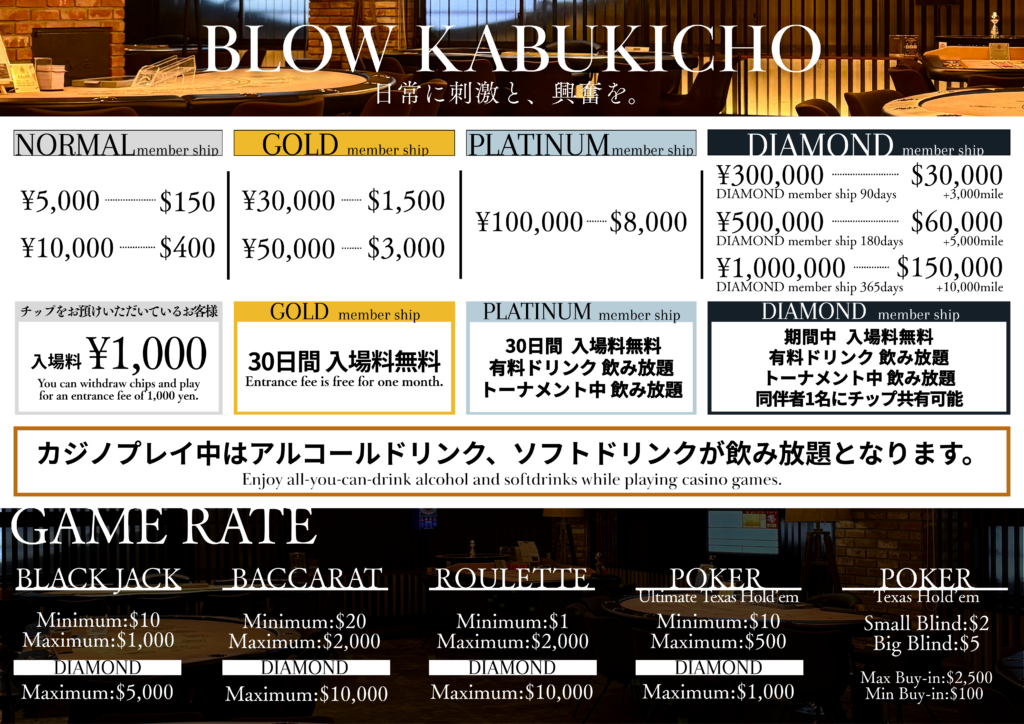 また、テキサスホールデムについては初心者講習をご用意しております。予約不要で受講可能ですので、お気軽にご来店ください。