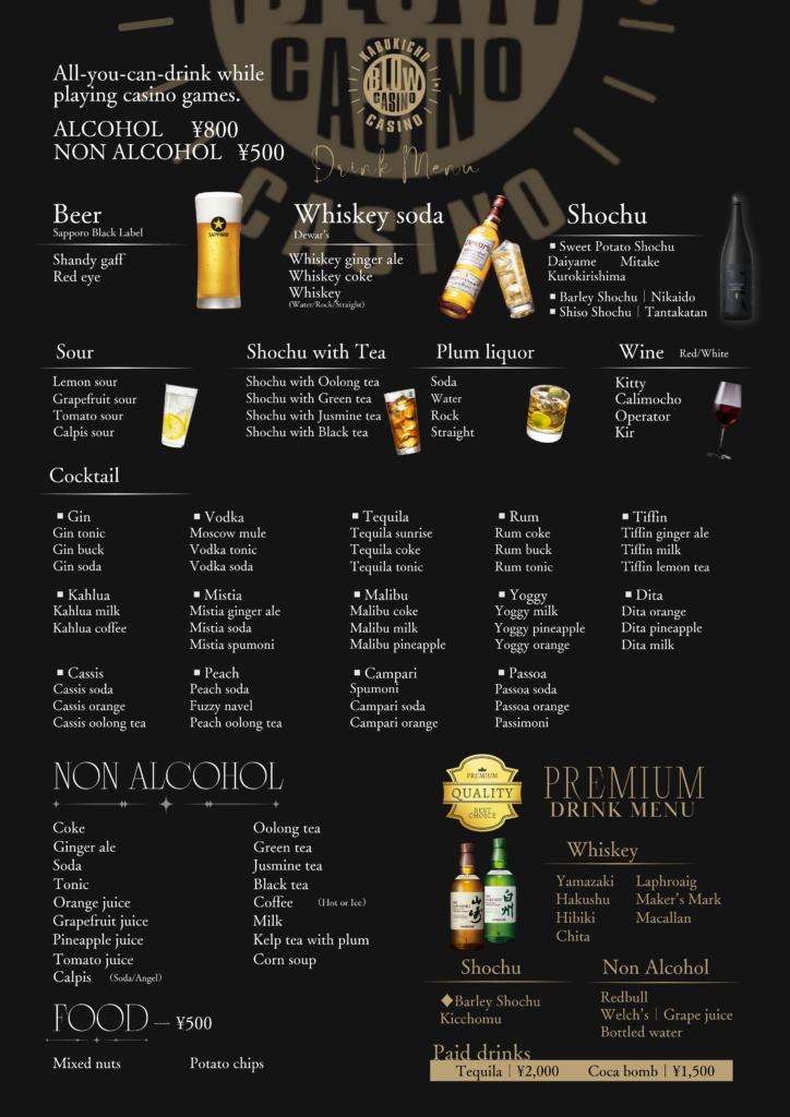 当店はアミューズメントカジノのため、現金や換金性のあるものを賭けることはできません。